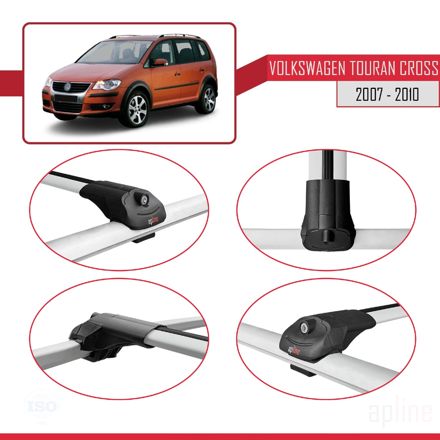 Compatible avec Volkswagen Touran Cross Pre-Facelift 2007-2010 ACE-1 Barres de Toit Railing Porte-Bagages de Voiture Gris Aluminium 2 Barres
