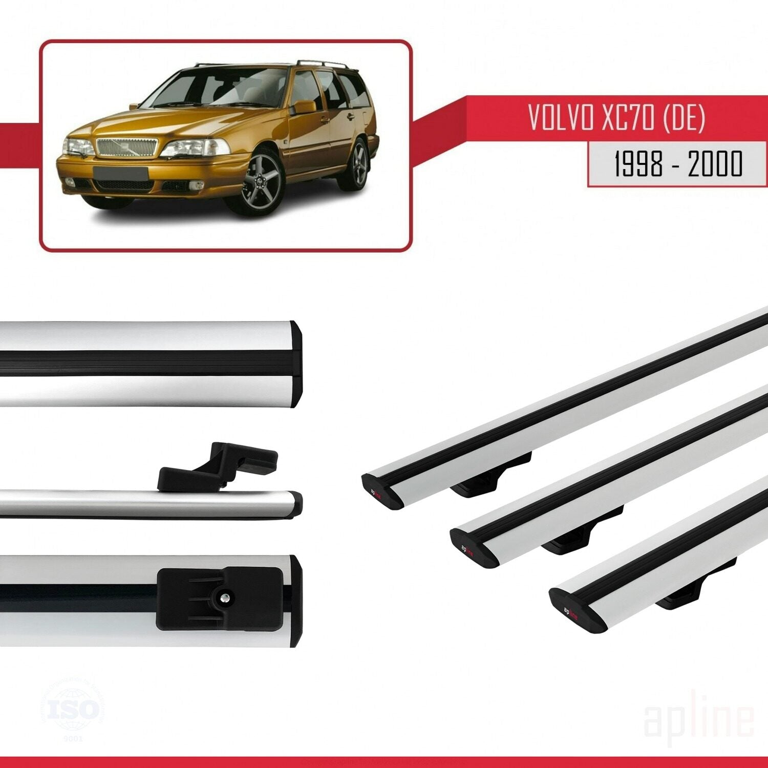 Compatible avec Volvo XC70 1998-2000 BASIC Model Barres de Toit Railing Porte-Bagages de Voiture Gris Aluminium 3 Barres
