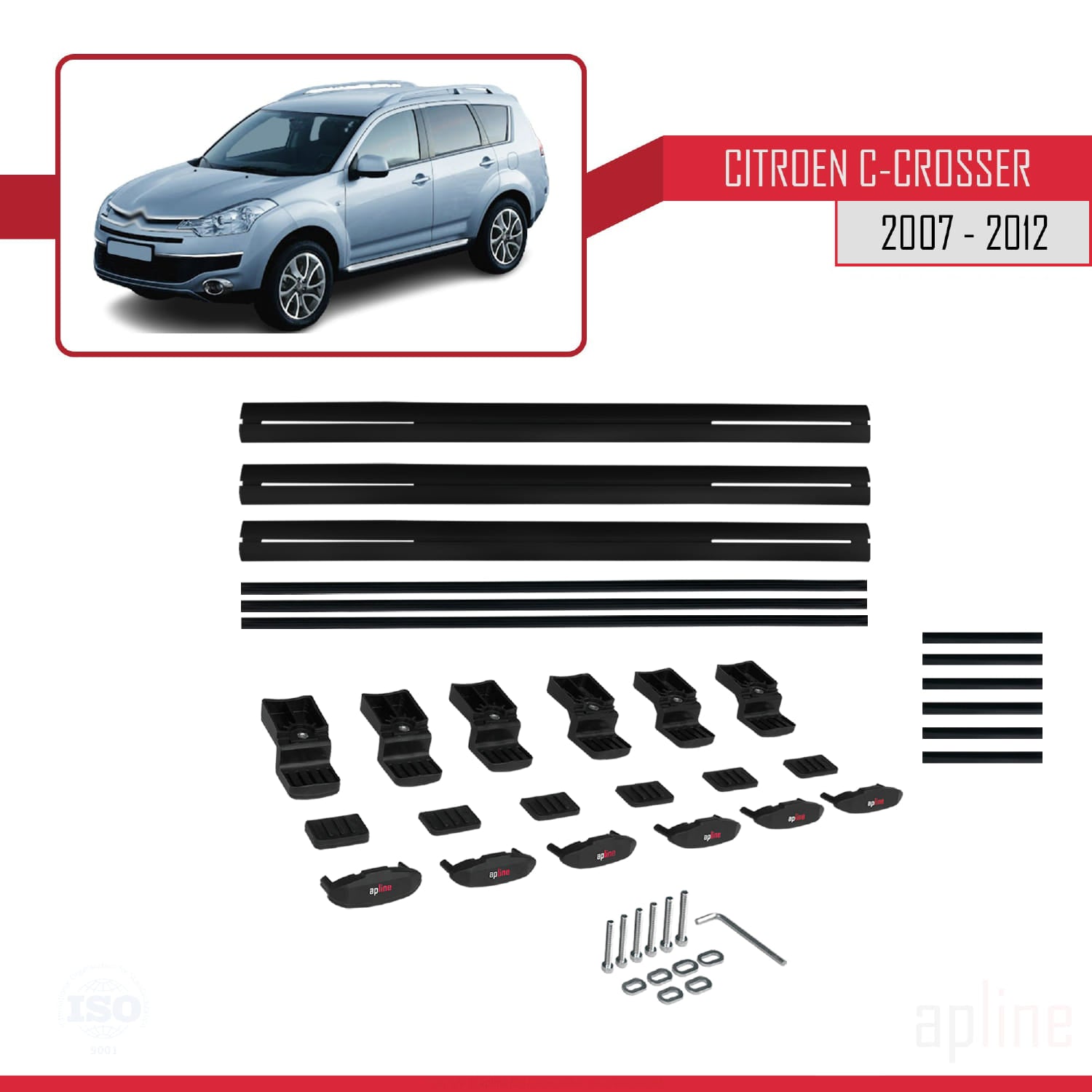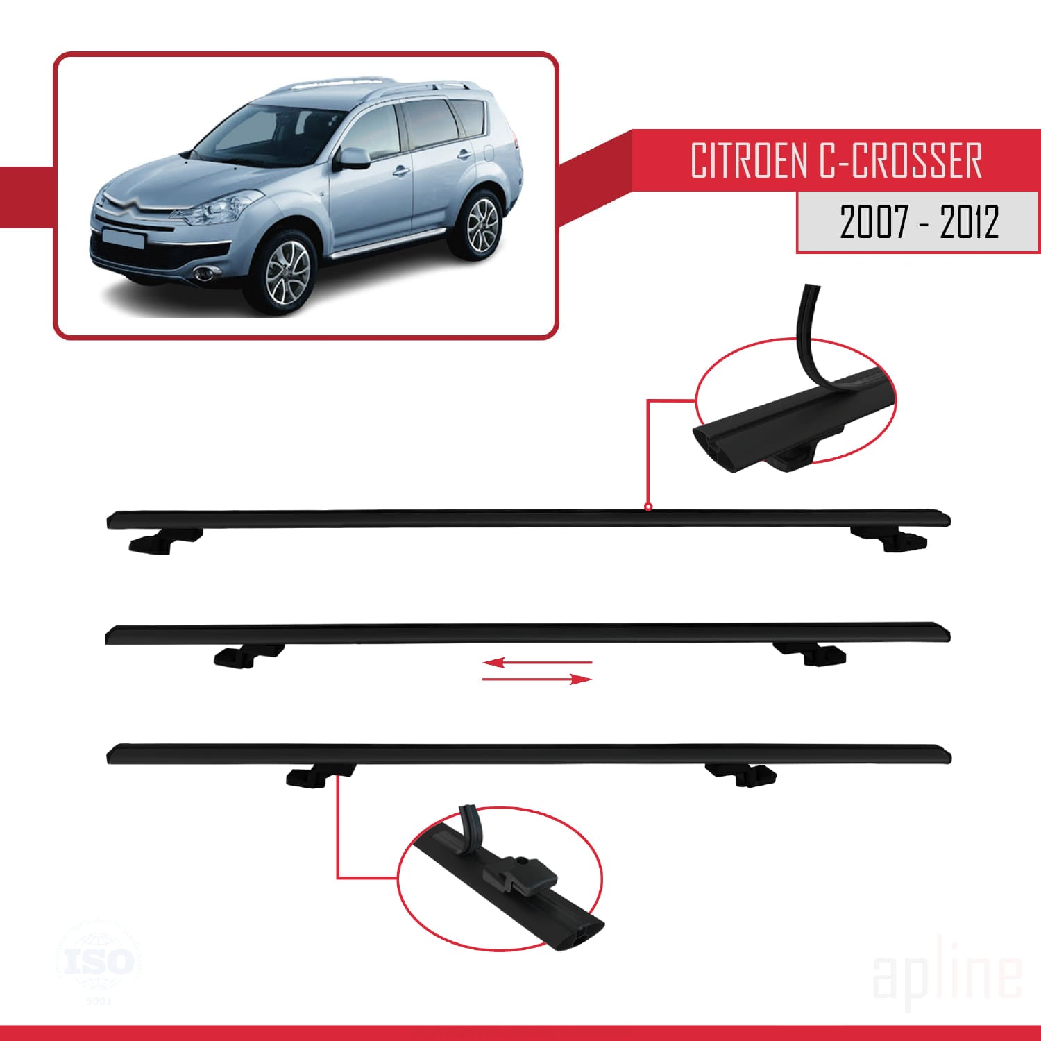 Compatible avec Citroen C-Crosser 2007-2012 BASIC Model Barres de Toit Railing Porte-Bagages de Voiture Noir Aluminium 3 Barres